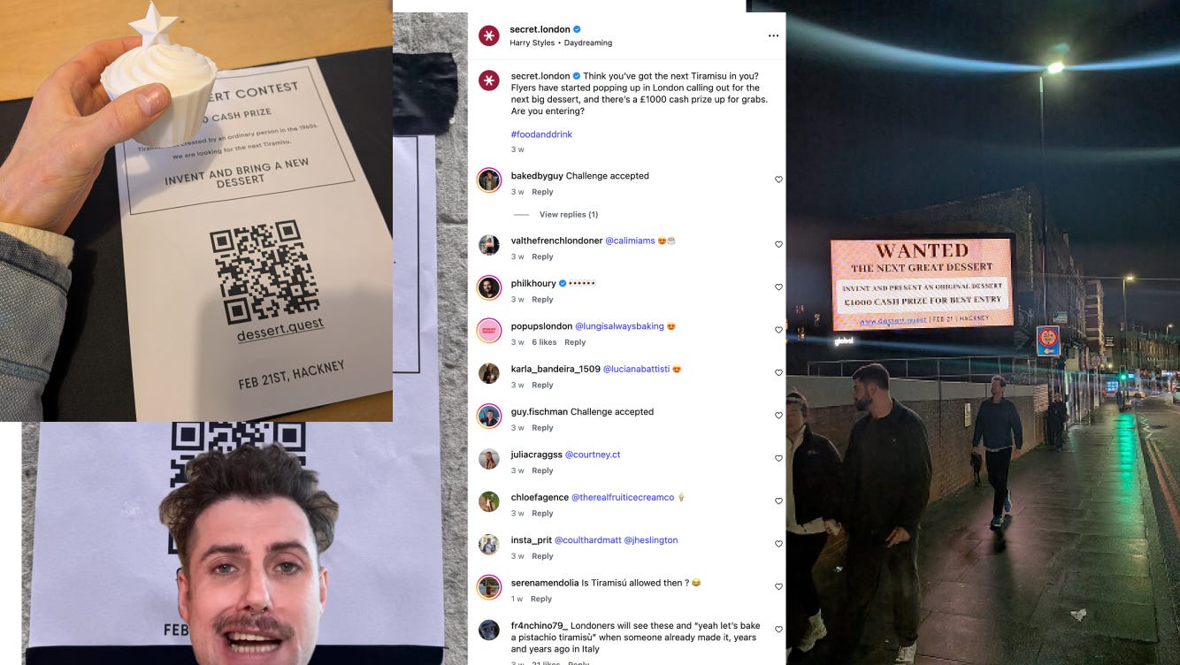 We threw up a quick website (dessert.quest), and put up posters around London. The posters got some traction on instagram and we also ended up on a billboard.